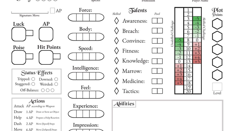 Use this fillable PDF to keep trqack of your characters.